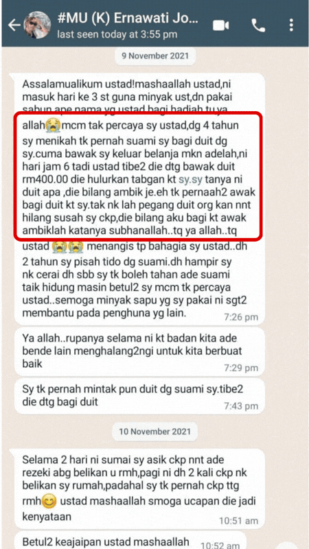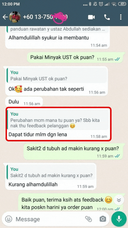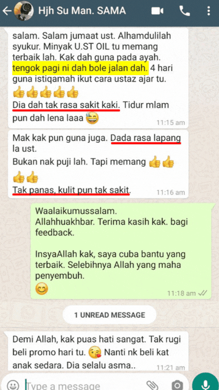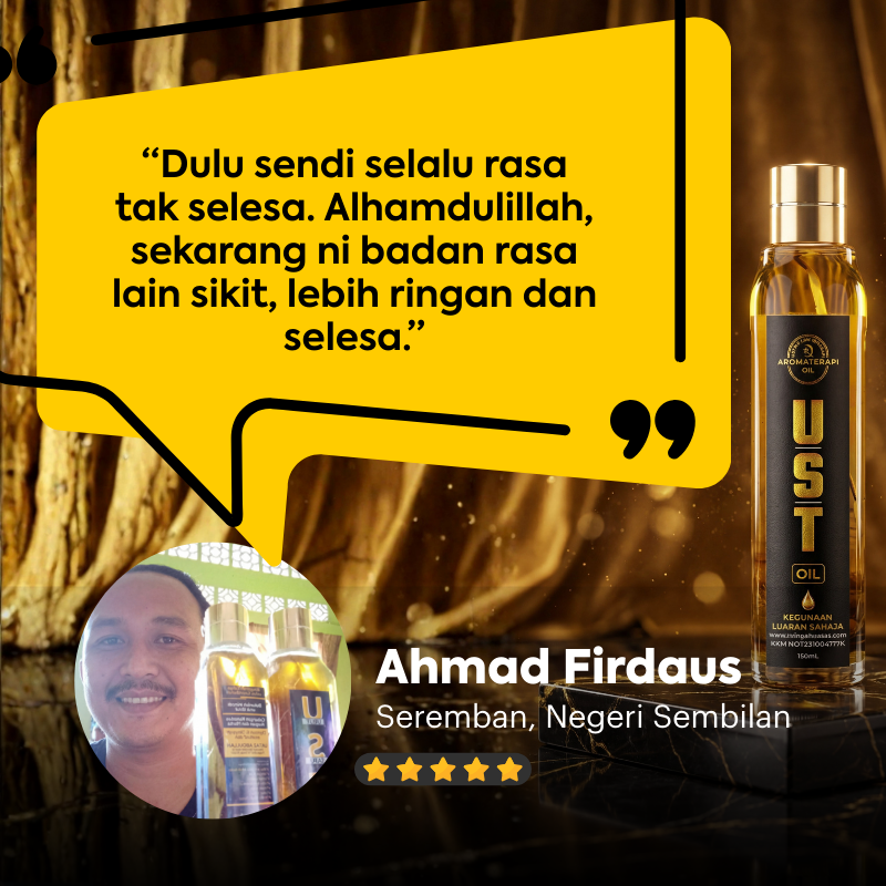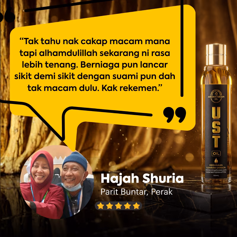 Mereka yang ikhtiar dengan UST Oil sudah mula rasa perubahan ketenangan badan, emosi dan rumah tangga dengan izin Allah.